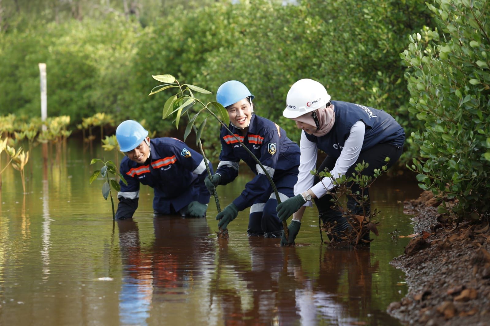 Hasil nyata terlihat pada beberapa anggota MIND ID. Contohnya, PT Freeport Indonesia telah menanam 164 jenis tanaman di area yang dulunya digunakan untuk menampung tailing dan di tempat percobaan reklamasi.